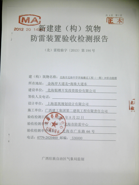 (2)核查防雷装置是否通过了验收或国家有关部门的技术检测。