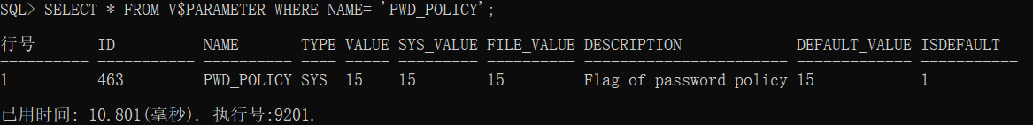 SELECT * FROM V$PARAMETER WHERE NAME= 'PWD_POLICY';