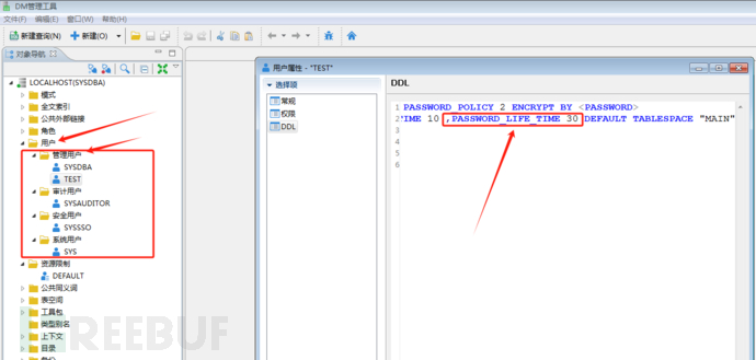 登录超时:使用自带的DM管理工具,SYSDBA登录后查看用户,点击用户属性,在DLL中查看口令有效期“password_life_time”的值(密码有效期30天)。