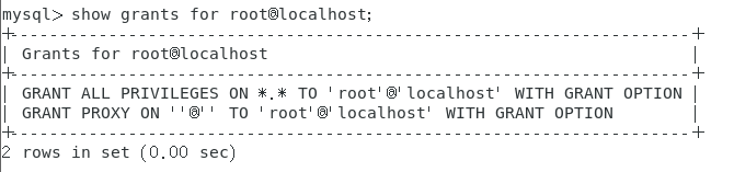 (1)执行“show grants for root@localhost”命令,查看用户登录的IP地址,核查是否给所有用户加上了IP地址限制以拒绝所有未知主机的连接。
