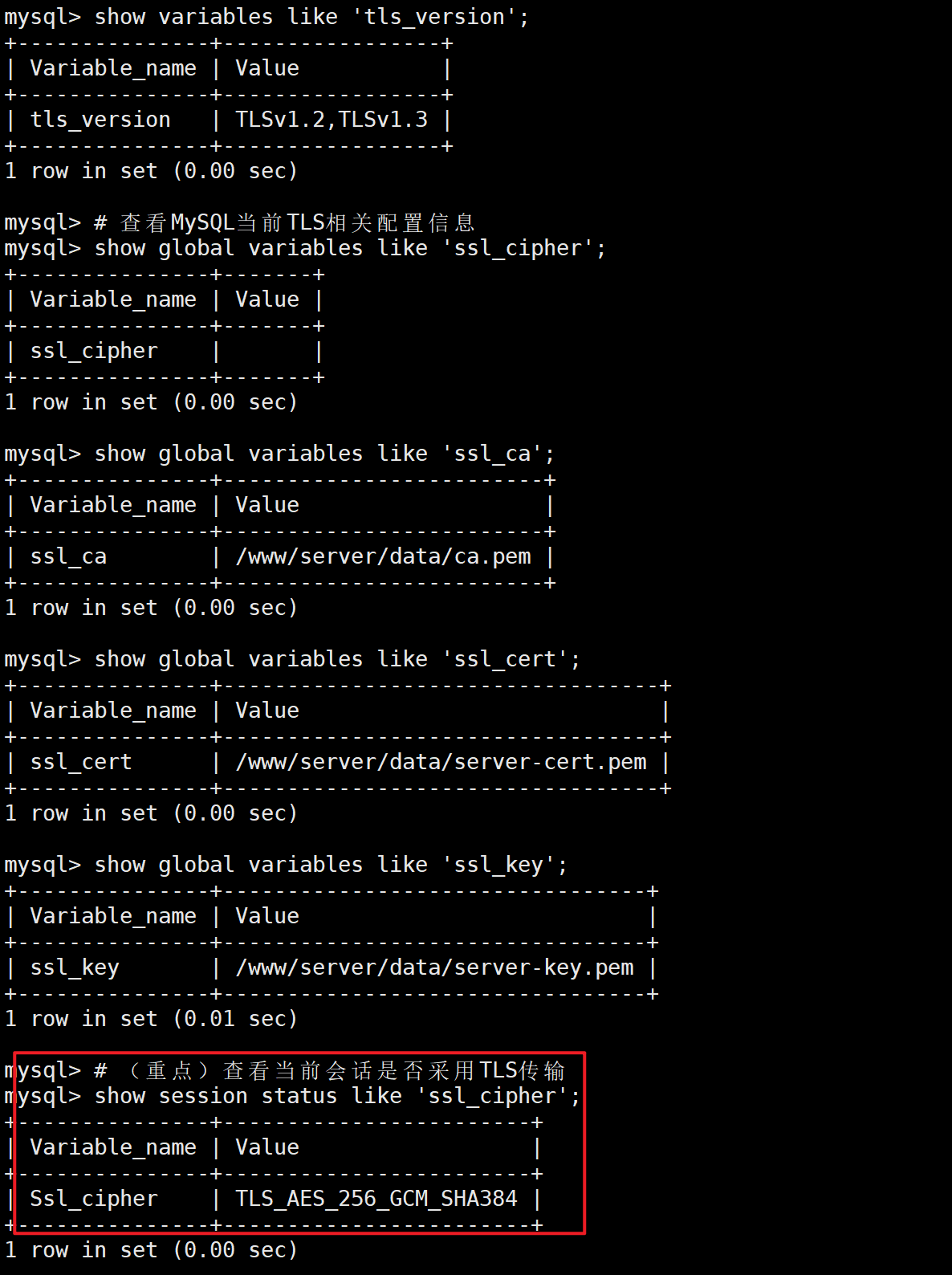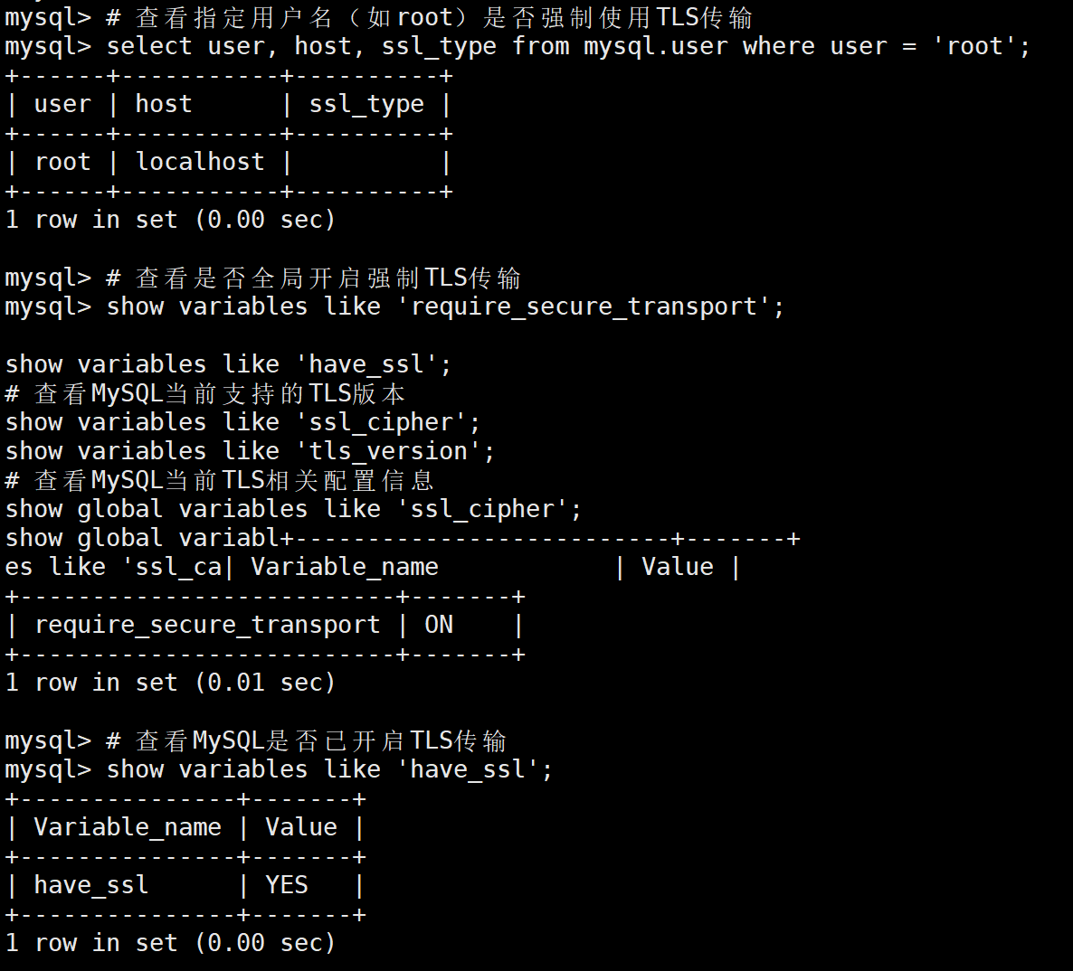 # 查看指定用户名(如root)是否强制使用TLS传输