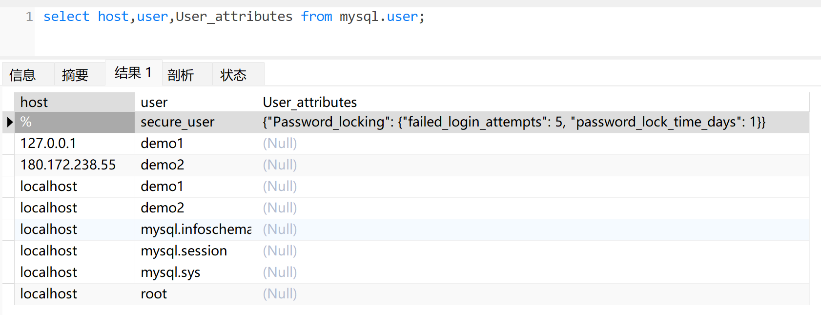 MySQL低版本不支持登录失败锁定策略,从MySQL 8.0开始支持单用户设置失败锁定策略,从MySQL 8.1开始支持锁定时长限制至小时或分钟。
