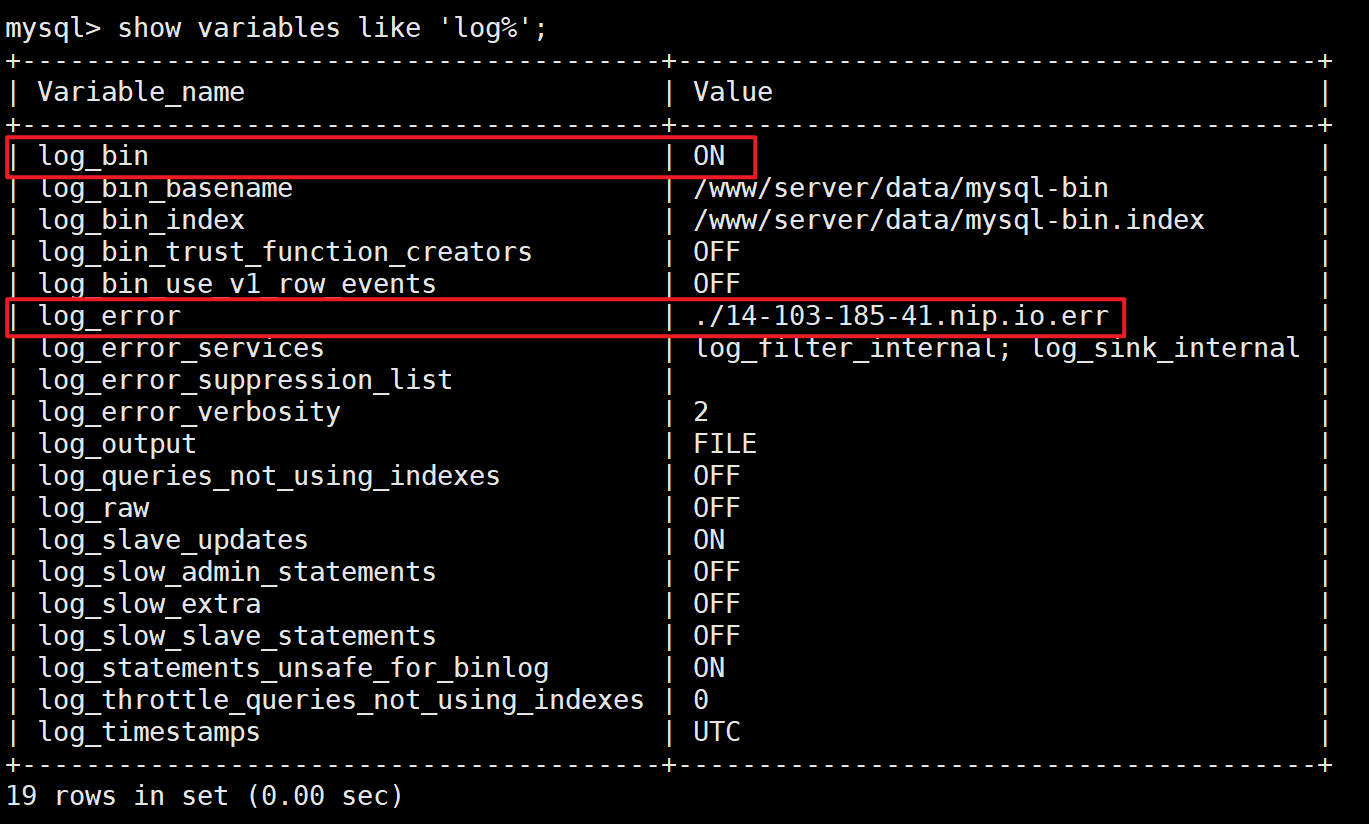 ① show variables like 'log_%';