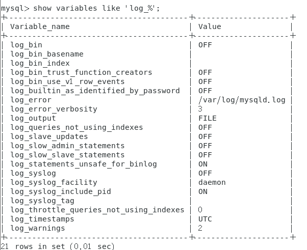 show variables like 'log%';